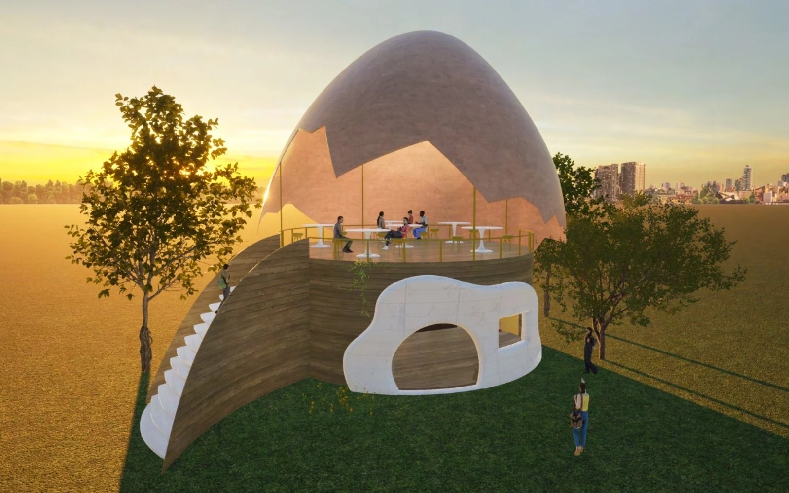 3D design and rendering of a hypothetical egg tart shop on the UT Austin campus.